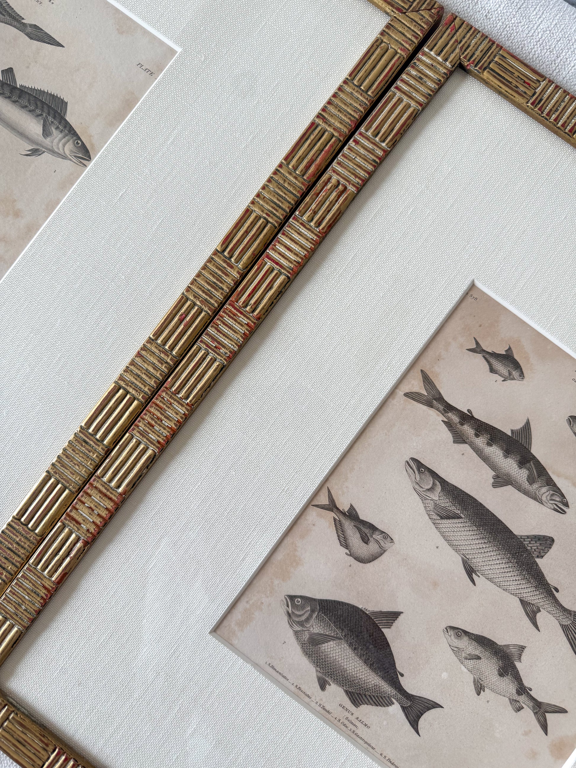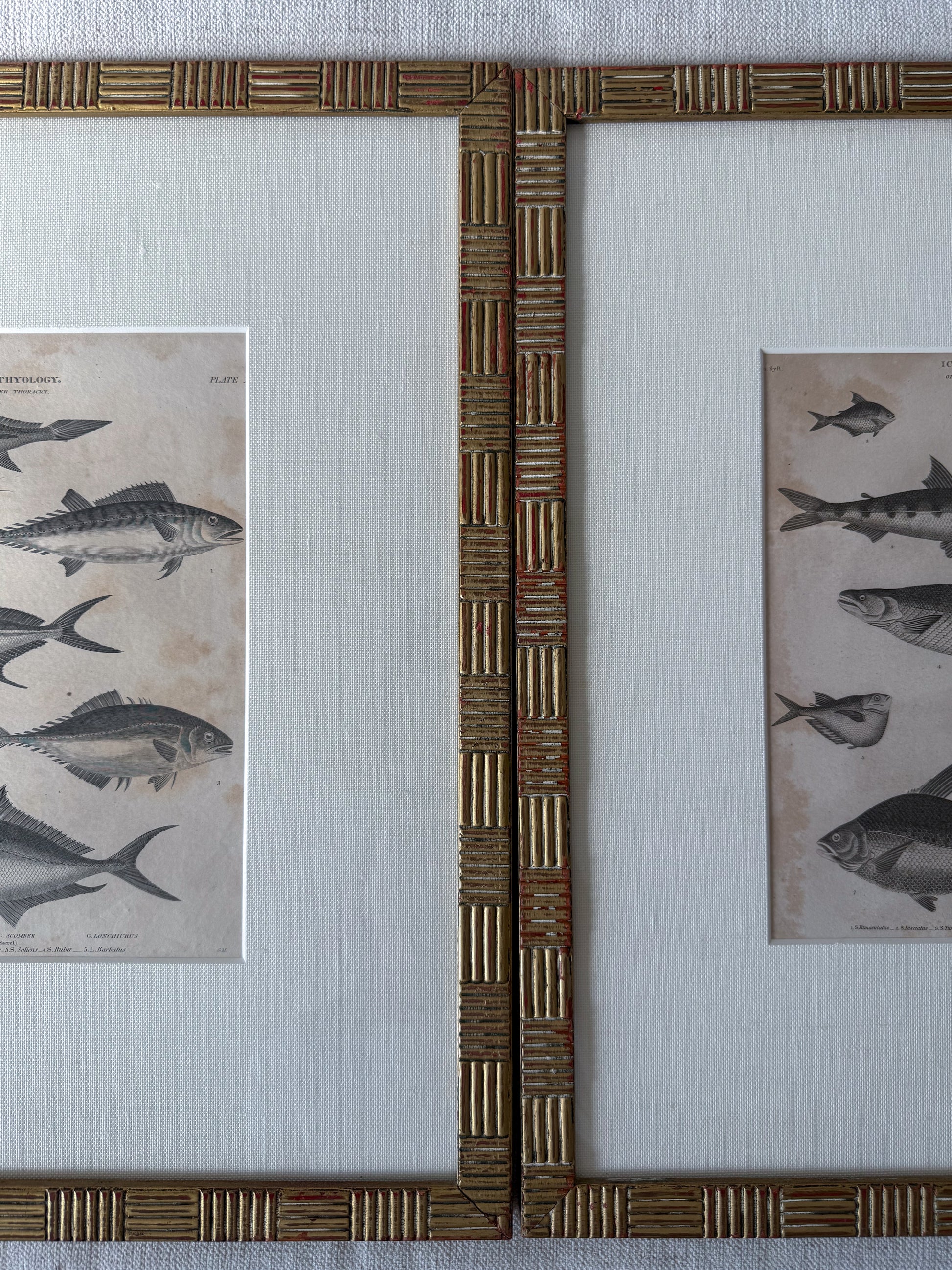Pair of 19th century fish engravings in vintage frame.